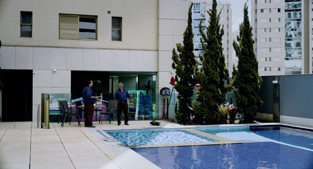 Em uma cena que faz lembrar o também belíssimo filme brasileiro Que horas ela volta? (Anna Muylaert), o colega de trabalho de Welington e também zelador do condomínio, Flávio (Russo Apr), protesta contra os baixos salários recebidos e diz a ele que seu desejo era dar um “tibum” na piscina do condomínio. Diferente do filme de Muylaert, porém, o desejo aqui não se tornará realidade. Será uma alegoria das diferenças desse Brasil agora sob o poder de Bolsonaro? Talvez. A temática é enunciada logo no primeiro ato por meio dos foguetes que festejam a eleição do novo Presidente. Foguetes e explosões, aliás, produzem uma bela rima que vale ser observada.