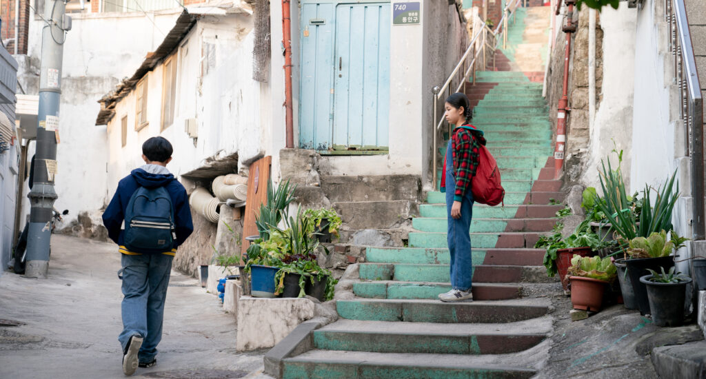 Nora (Greta Lee) é uma menina obstinada e competitiva, ambiciosa e que sonha alto desde novinha. Hae Sung (Teo Yoo) é um rapaz esforçado e emotivo, companheiro e fiel à sua família. Dessa forma, ainda no período da pré-adolescência, é que somos apresentados aos dois personagens centrais do longa. Estudantes da mesma turma, amigos e entusiastas de um romance desde seu primeiro encontro marcado, com a presença de suas mães, em um parque nas redondezas. Song consegue nos passar a sensação de que aquelas duas crianças já eram, de certa forma, predestinadas uma à outra.